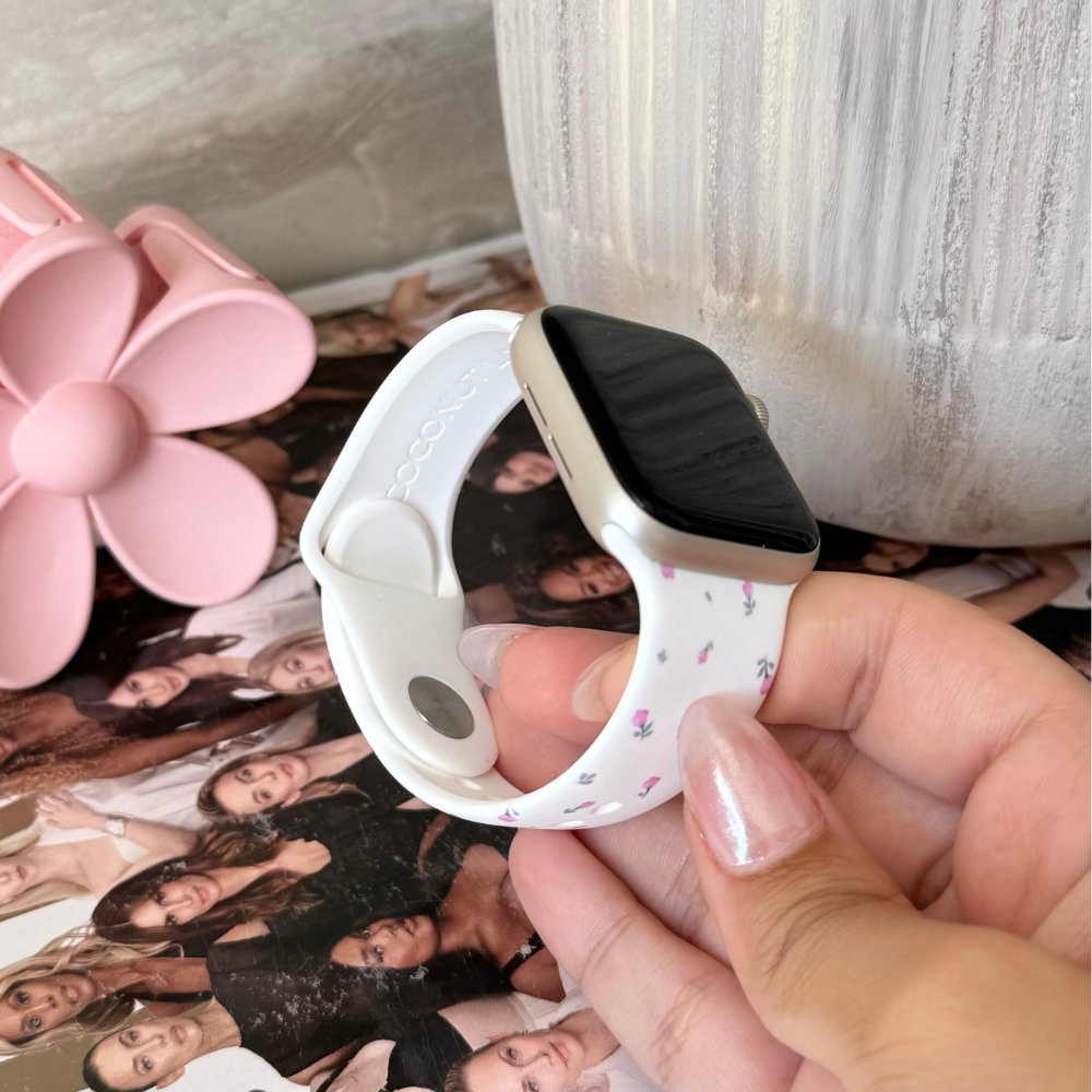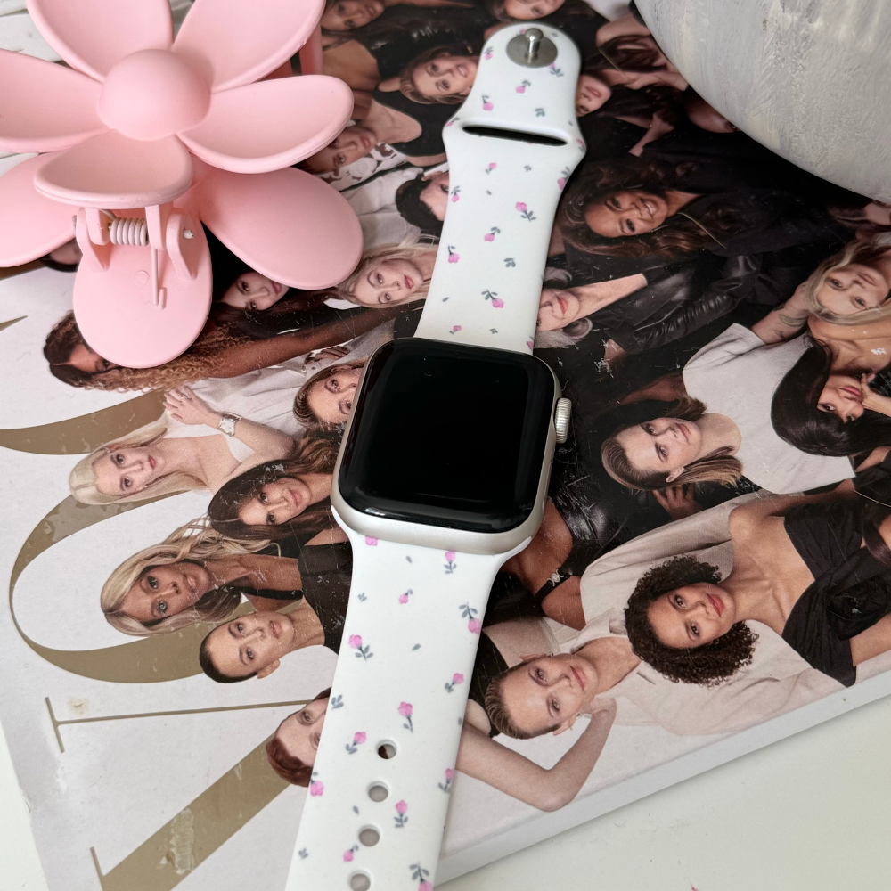 Elevate your Apple Watch with the charming Ditsy Floral White Apple Watch Strap. This strap combines a delicate floral pattern with premium materials, offering a blend of elegance and functionality for everyday wear.