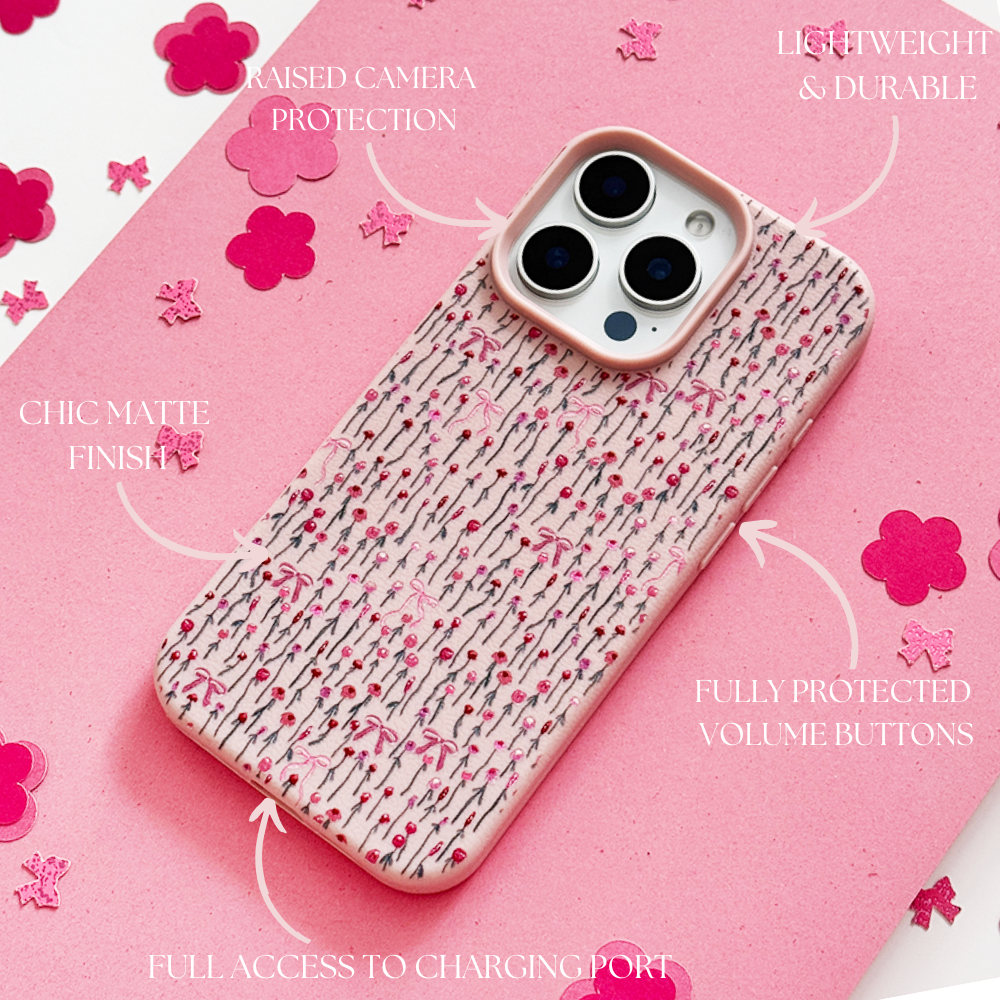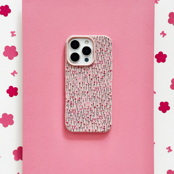 Soft, sweet, and oh-so-pretty! The Peony Bow Phone Case features a dreamy dusty pink background sprinkled with delicate peonies and dainty bows.