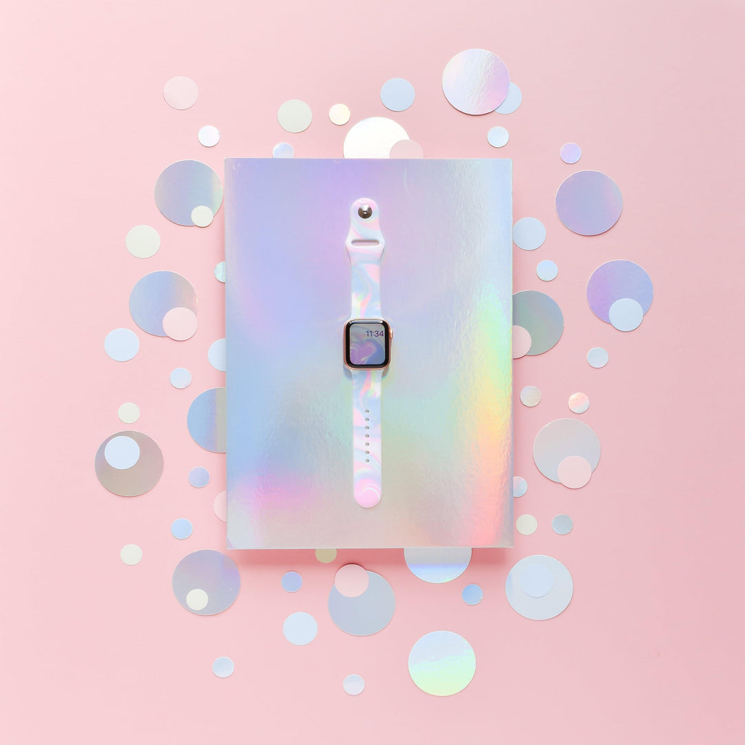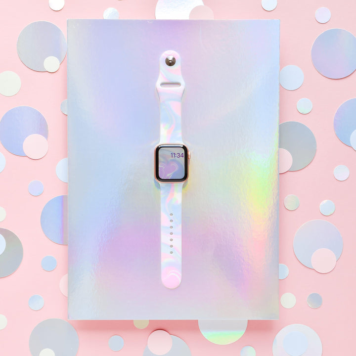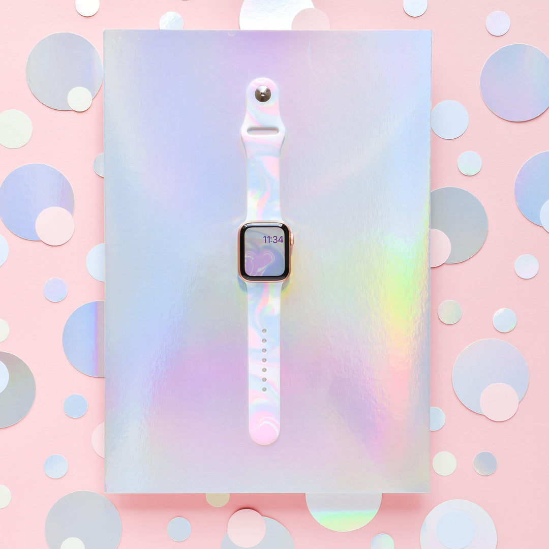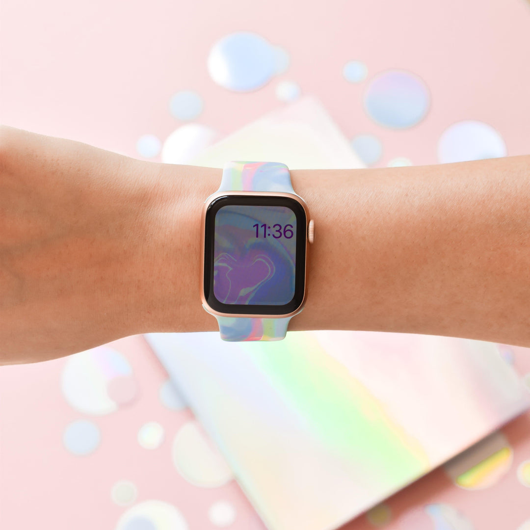The Holo Bubble Apple Watch Strap is the perfect way to level up your tech-savvy look. This strap features a holographic iridescent design, the ultimate look for our 90s babes.