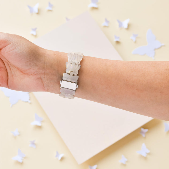 Strap your Apple Watch in some summery style with our Luxe Holo Butterfly Strap! This ultra-durable strap is decked with holographic butterflies that'll dazzle in the sunlight. Glam things up without worrying about it fading away – this strap is designed to last! Dive into summer with a look that'll keep you buzzing!