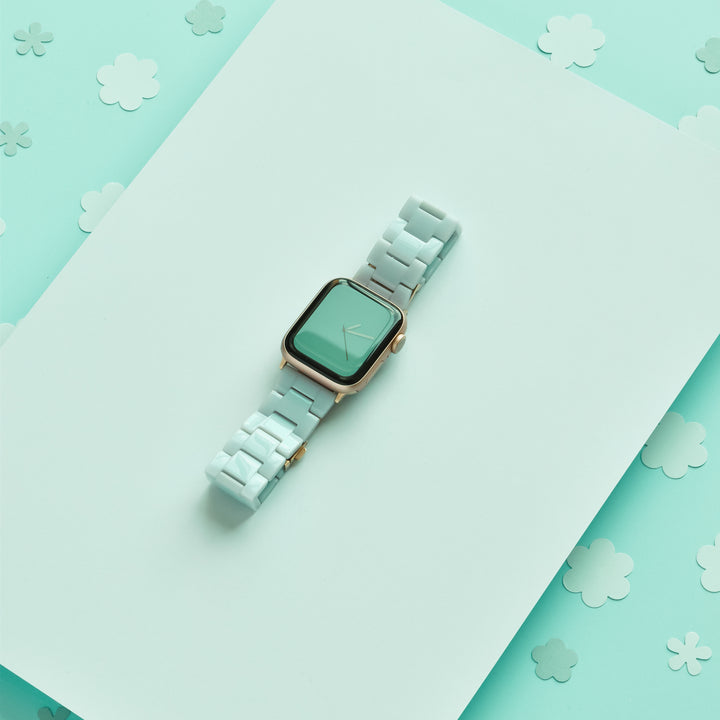 Let your wrist make a colourful statement with our Luxe Pastel Mint Apple Watch Strap! With a delicate pastel mint colour, made of durable resin material, you'll be sure to 'spring' into summer in style!