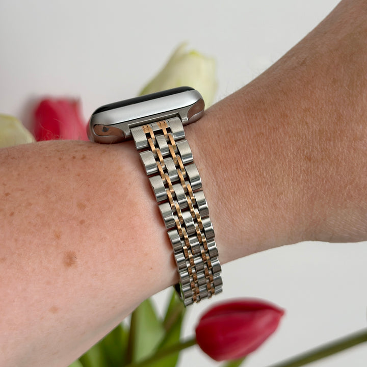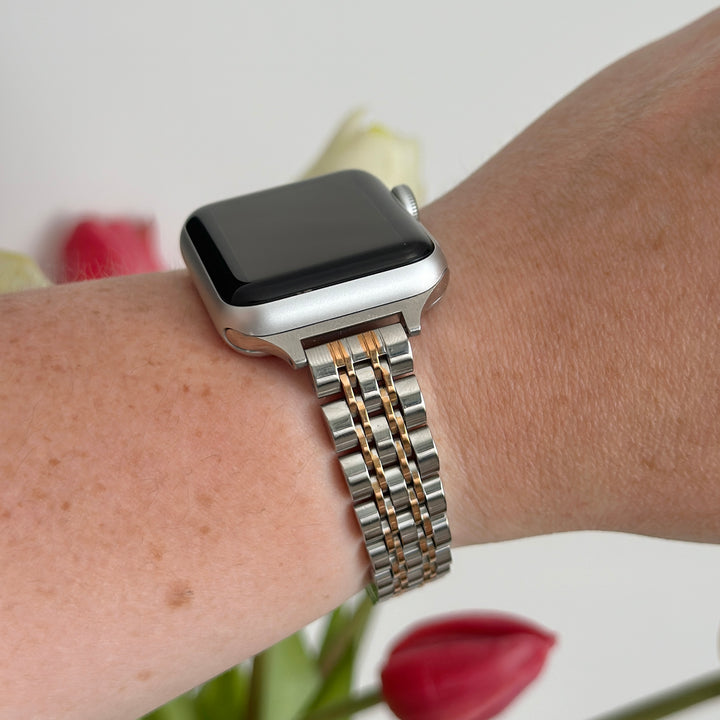 Slim Stainless Steel Apple Watch Strap - Silver & Rose Gold
