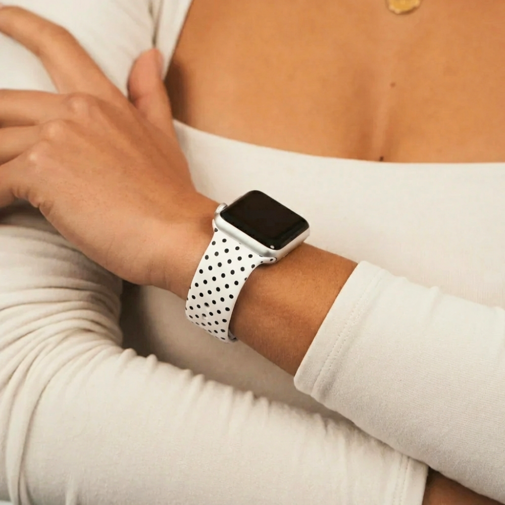 With its timeless white base and chic black polka dots, this strap brings just the right mix of classic charm and fun flair. Whether you're heading to brunch, the gym, or just scrolling from the sofa, your Apple Watch has never looked this cute.